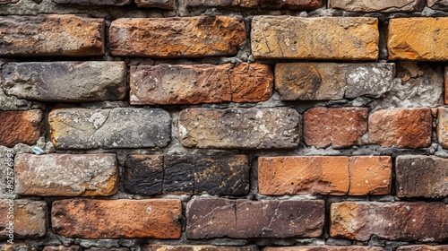 Rustic brick wall, highlighting the rough texture and natural variations in the bricks