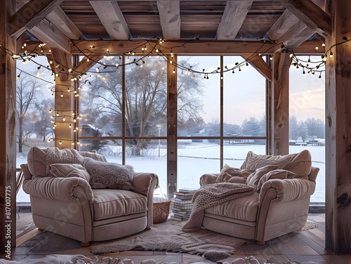 Rustic Farmhouse Living Room A Cozy Winter Retreat with Plush Furnishings and Inviting Warmth