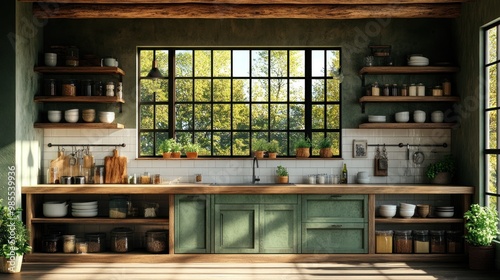 Rustic Kitchen Interior Design with Greenery