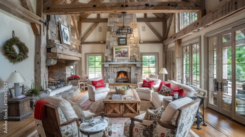 Rustic Living Room with Wooden Furniture and Warm Decor, Cozy Atmosphere and Inviting Lighting, Ideal for Traditional Home Design and Comfort