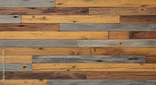 Rustic reclaimed wood paneling featuring a mix of colors and textures, adding character and warmth to any space with its unique and weathered appearance