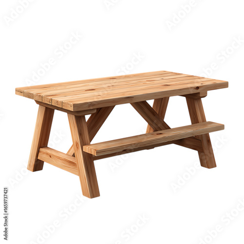 Rustic wooden picnic table isolated on transparent background