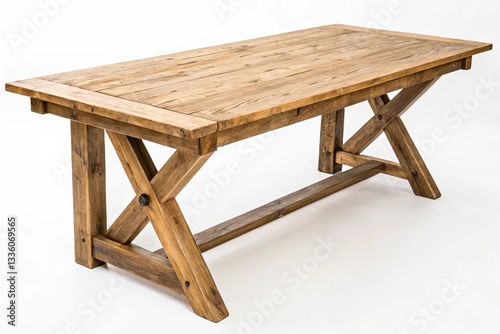 Rustic Wooden Table Setting on White Background for Product Display and Copy Space in Minimalist Design Concept