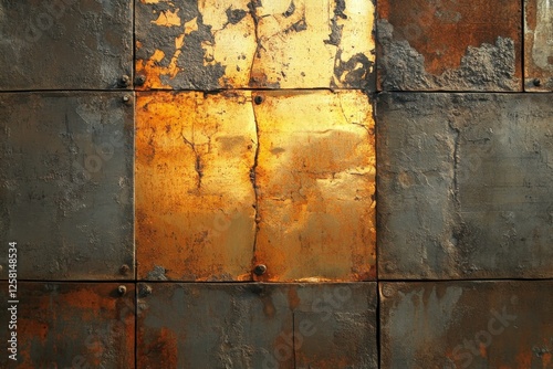 Rusty Metal Wall Texture: Abstract Gold and Gray Patina
