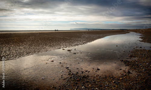 Rye Harbour beach with dark clouds, Sussex, England