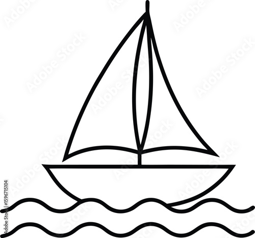 Sailboat and Sun Minimal Line Art