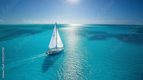 Sailboat Sailing on Crystal Clear Turquoise Ocean Water