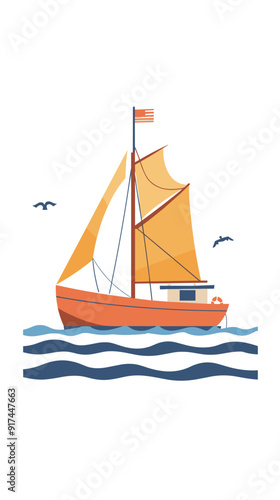 Sailing boat in the sea. Vector illustration in flat style.
