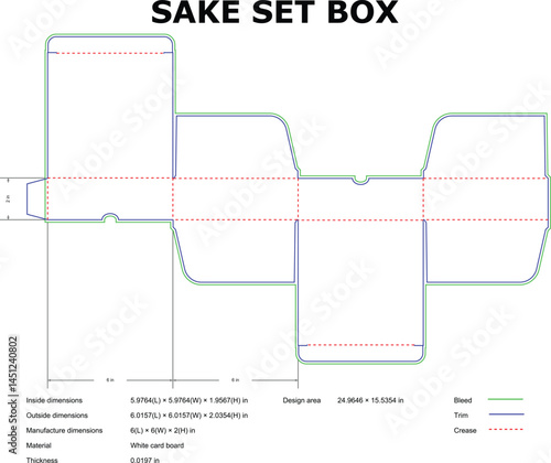 Sake Set Packaging Box Template With Bleed Trim And Crease Lines