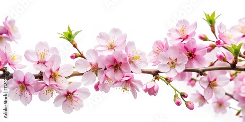 Sakura flowers isolated on white background, spring, pink, cherry blossoms, petals, blooming, Japanese, floral, delicate, nature