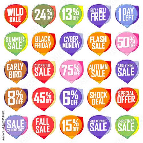 Sale banners design template, discount tags. Set promo icons for online stores, vector illustration