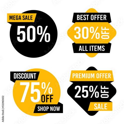 Sale label collection. Premium offer, Mega sale, Discount tag. Vector shape of discount template orange and black background