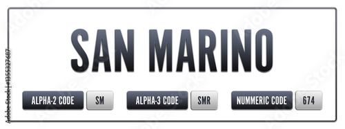 San Marino. Illustration with ISO 3166-1 Country Code. ISO Alpha-2, Alpha-3 and Numeric code. Two three letters and numbers.