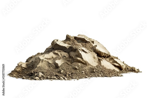 Sand Pile Landscape, Mound of Brownish Land Material, Isolated on White Background