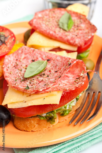 sandwich with salami ,cheese and vegetables