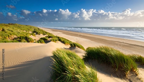 Sandy beach with dunes and waves