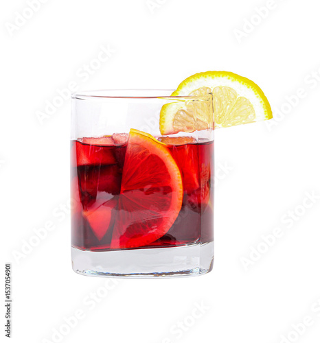 Sangria in glass, closeup object. Isolated on transparent background