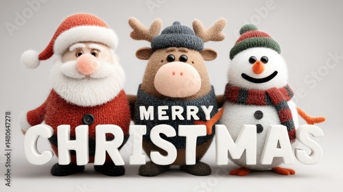 Santa claus, reindeer and snowman wishing merry christmas