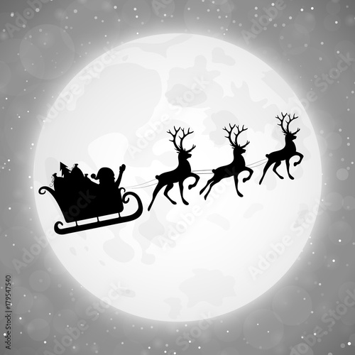 Santa Claus with his sledge against a full moon. Vector.