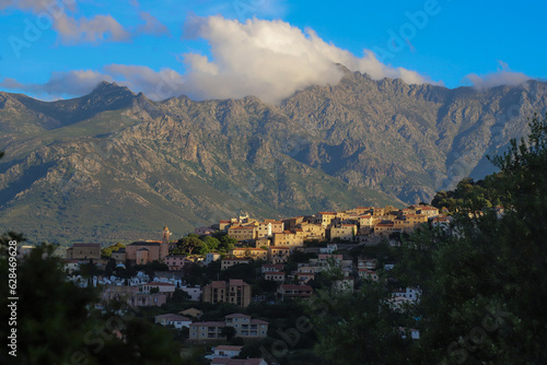 Santa Reparata di Balagna, Balagne, Corsica, A general view, wide shot of the village, end of the afternoon,