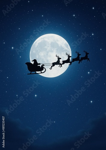Santa silhouette moonlit night