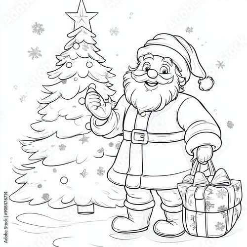Santa with gifts, coloring book outlines. Santa Claus coloring book sketch. Santa Claus line art.
