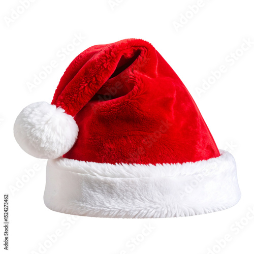 Santa’s Holiday Hat in Cozy Fabric Texture, Isolated Transparent Background
