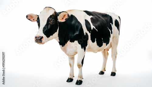 Sapi Hitam Putih Berdiri di Latar Putih