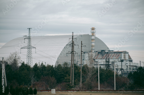 Sarcophagus over the 4th power unit of a nuclear power plant in Pripyat in Chernobyl