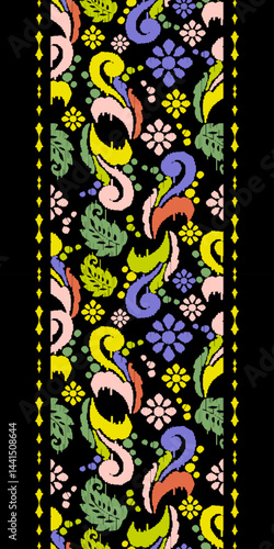 Saree Sarong Motifs Ikat floral paisley embroidery floral.ikat ethnic oriental pattern traditional.Ikat embroidery style abstract embroidery design for texture,fabric,clothing,wrapping,decoration