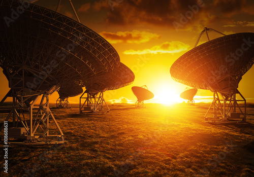 Satellite dish view at sunset