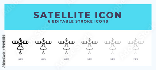 Satellite line icon illustrations with editable strokes.