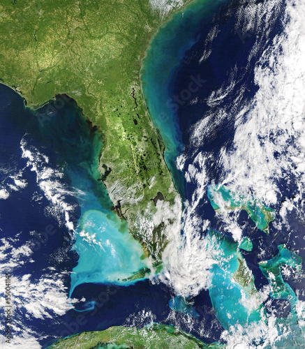 Satellite view of an hurricane hitting on Florida. View of Cuba, The Bahamas and Caribbean from the space. Elements of this image furnished by NASA.