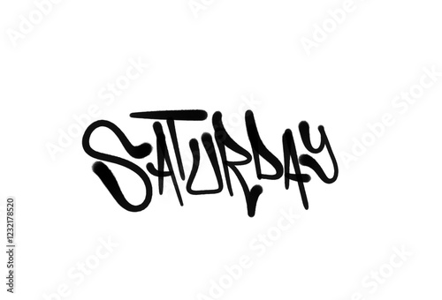 SATURDAY sprayed graffiti letters in black