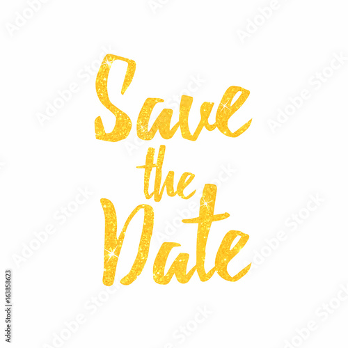 Save the date. Golden text, lettering. Wedding greeting card design element