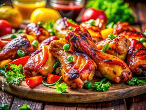 Savor succulent grilled and colorful BBQ chicken wings. High-resolution PNG image showcases delicious food photography.