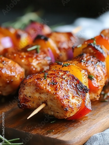 Savoring grilled chicken skewers drizzled with lavender honey for a delightful culinary experience