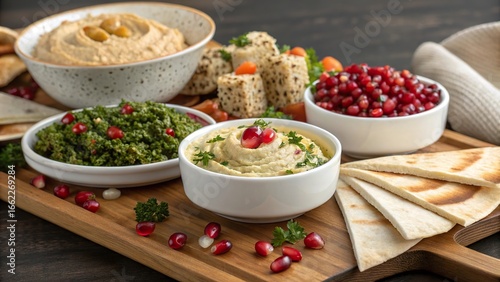 Savoring middle eastern mezze platter featuring hummus and vibrant accompaniments