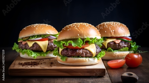 Savory Cheeseburger Stack: Layers of Flavor on a Dark Background