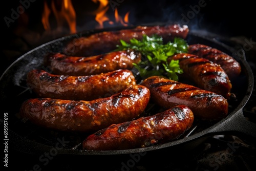 Savory Grilled sausages. Dinner pork beef. Generate Ai