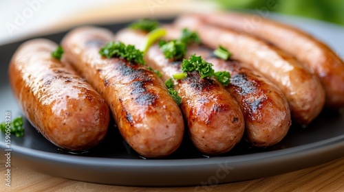 Savory platter of smoked sausages paired with fresh kale garnish