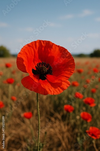 Scarlet Poppy in Spring Field