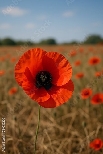 Scarlet Poppy in Spring Field