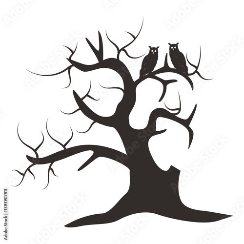 Scary Halloween Tree Silhouette. Isolated Vector Illustration.