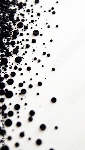 Scattered black dots on pristine white backdrop, noise, abstract