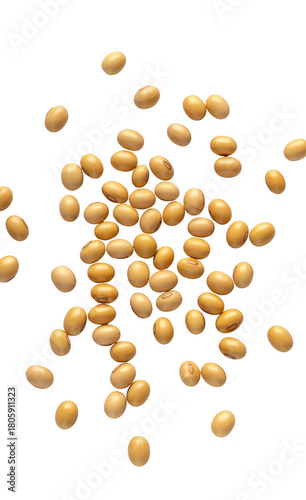 Scattered golden beans isolated on a transparent background