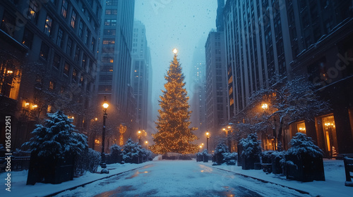 Scène hivernale de New York illuminée pour Noël