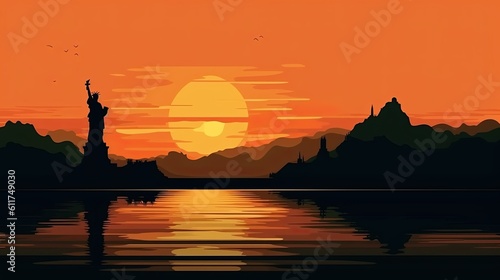 Scene silhouette of famous place Beautiful landmark the Statue of Liberty in new york USA vector.Generated with AI.