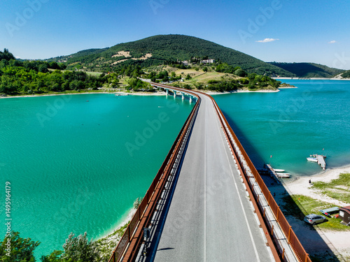 Scenic Italian lake bridge with vibrant blue water