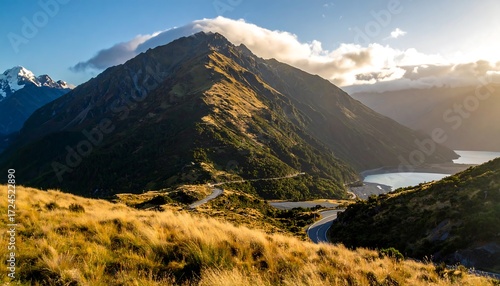 Scenic mountain vista with winding road